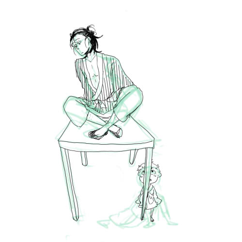 初めは警戒してびくびくと心を許してはいなかった鬼男だけど、閻魔のあまりの家事の出来なさに(洗濯物を凄いためる、掃除機かけない、ご飯作れなくて店屋物ばっか)「僕がしっかりしなければ!」となり、せっせと家事にせいを出し始める。
